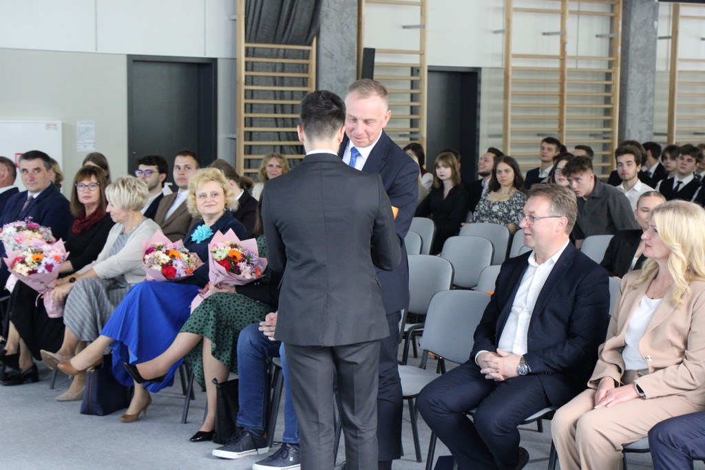 Maturzystów i Maturzystki żegnała nie tylko dyrektor naszej szkoły Pani Joanna Dymitrowska oraz dyrektor Centrum Kształcenia Zawodowego – Pan Jacek Ochab, ale również przedstawiciele Rady Rodziców w osobach: przewodniczący Pan Marek Burakowski oraz wiceprzewodnicząca Pani Bogna Rozmysłowska – Grech.