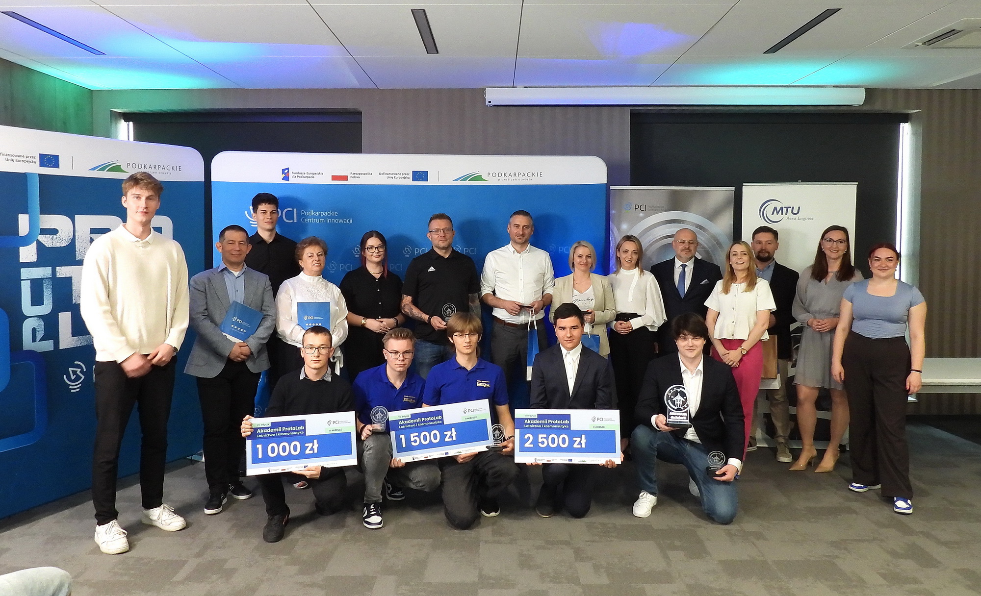 Organizowana przez Podkarpackie Centrum Innowacji „Akademia ProtoLAB” to cykl szkoleń zakończonych konkursem. W jej ramach uczniowie zajmują się nie tylko projektowaniem rozwiązań technologicznych (w tym roku tematyką było lotnictwo i kosmonautyka), ale również budowaniem modelu biznesowego umożliwiającego komercjalizację swoich pomysłów. O VII edycji „Akademii” pisaliśmy już we wcześniejszych artykułach (https://technozone.kwiatek.edu.pl/jestesmy-w-vii-edycji-akademii-protolab/ oraz https://technozone.kwiatek.edu.pl/akademia-protolab-koniec-szkolenia-poczatek-zmagan-konkursowych/).