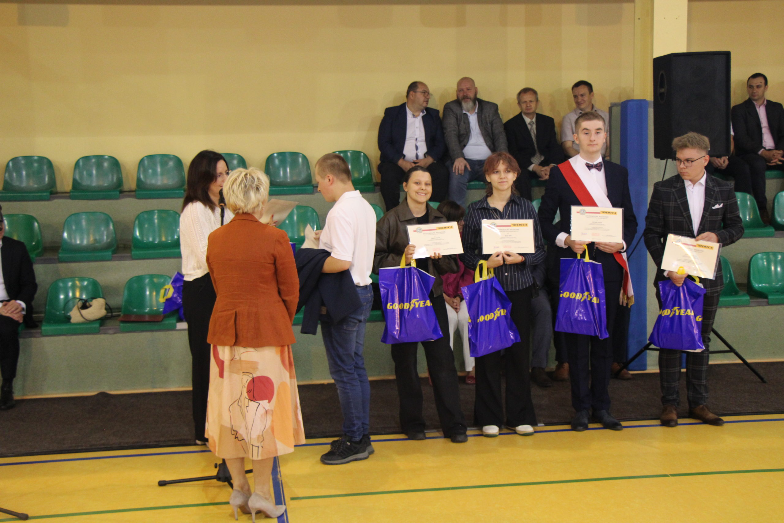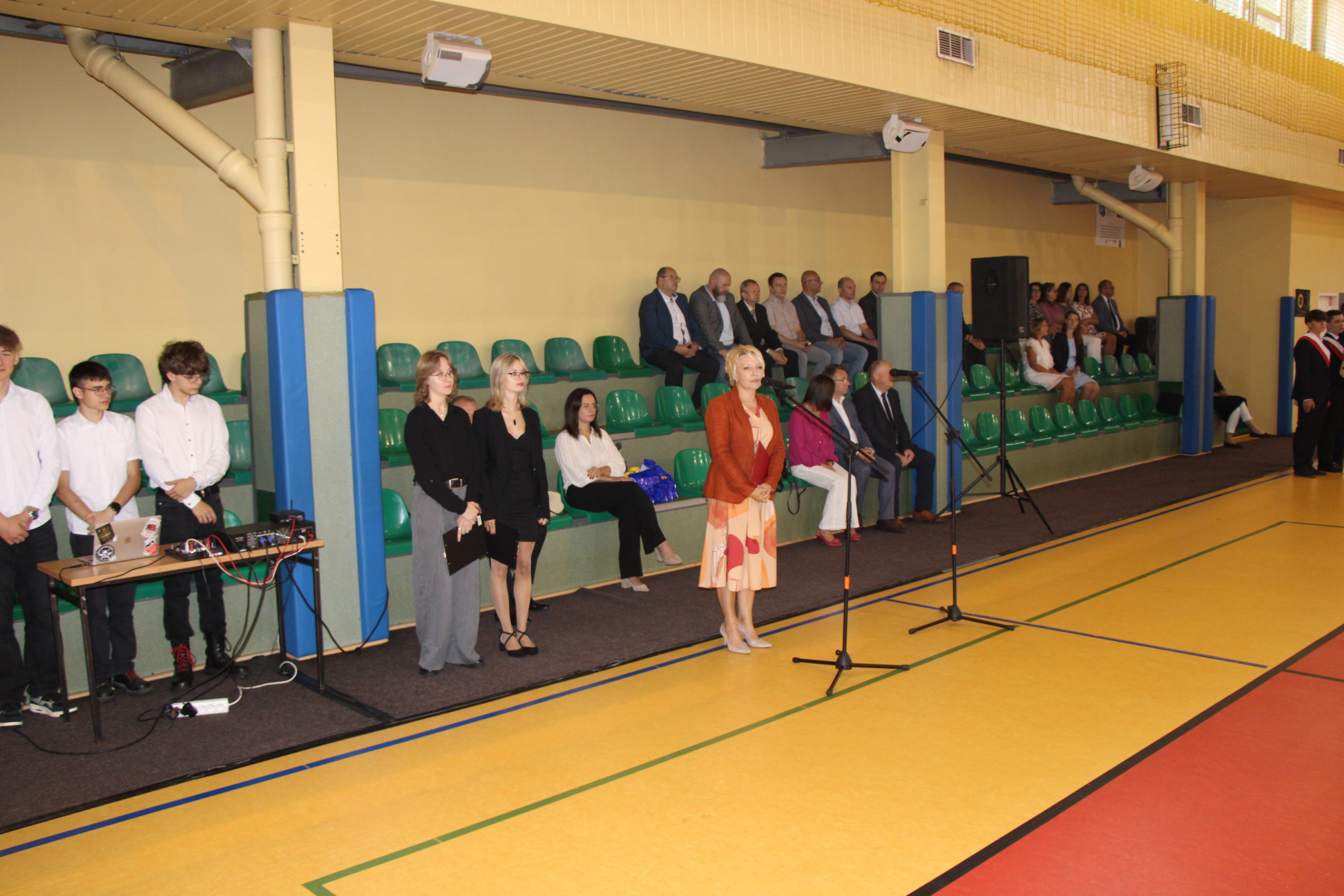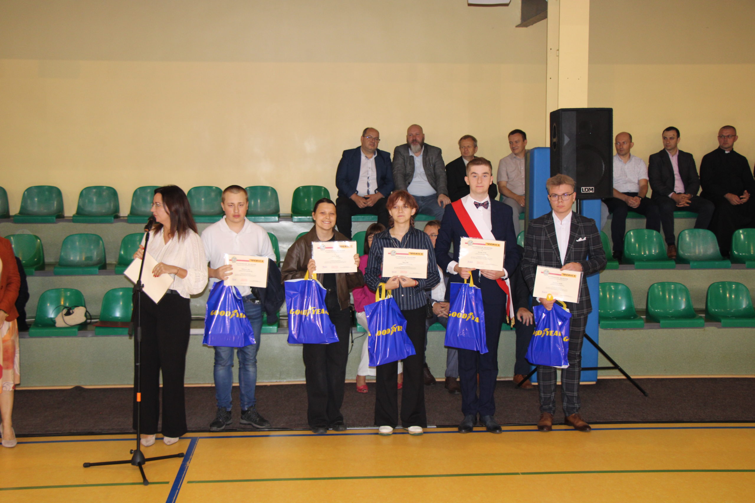 Pani dyrektor Joanna Dymitrowska, przywitała całą społeczność szkoły, a szczególnie uczniów klas pierwszych, wstępujących w szkolne progi KWIATKA. Zostały wręczone stypendia zakładowe Firmy Oponiarskiej Dębica S.A. dla 6 najzdolniejszych uczniów technikum. Stypendia wręczała Pani Sylwia Miazga przedstawicielka Zakładu.