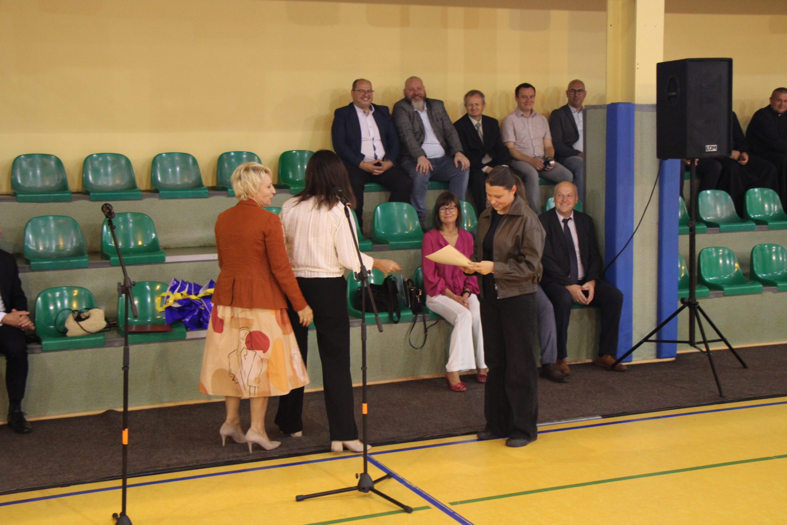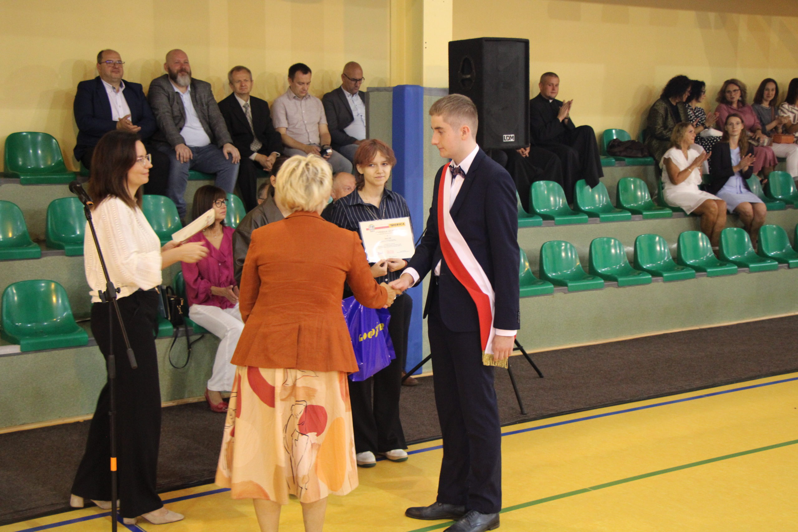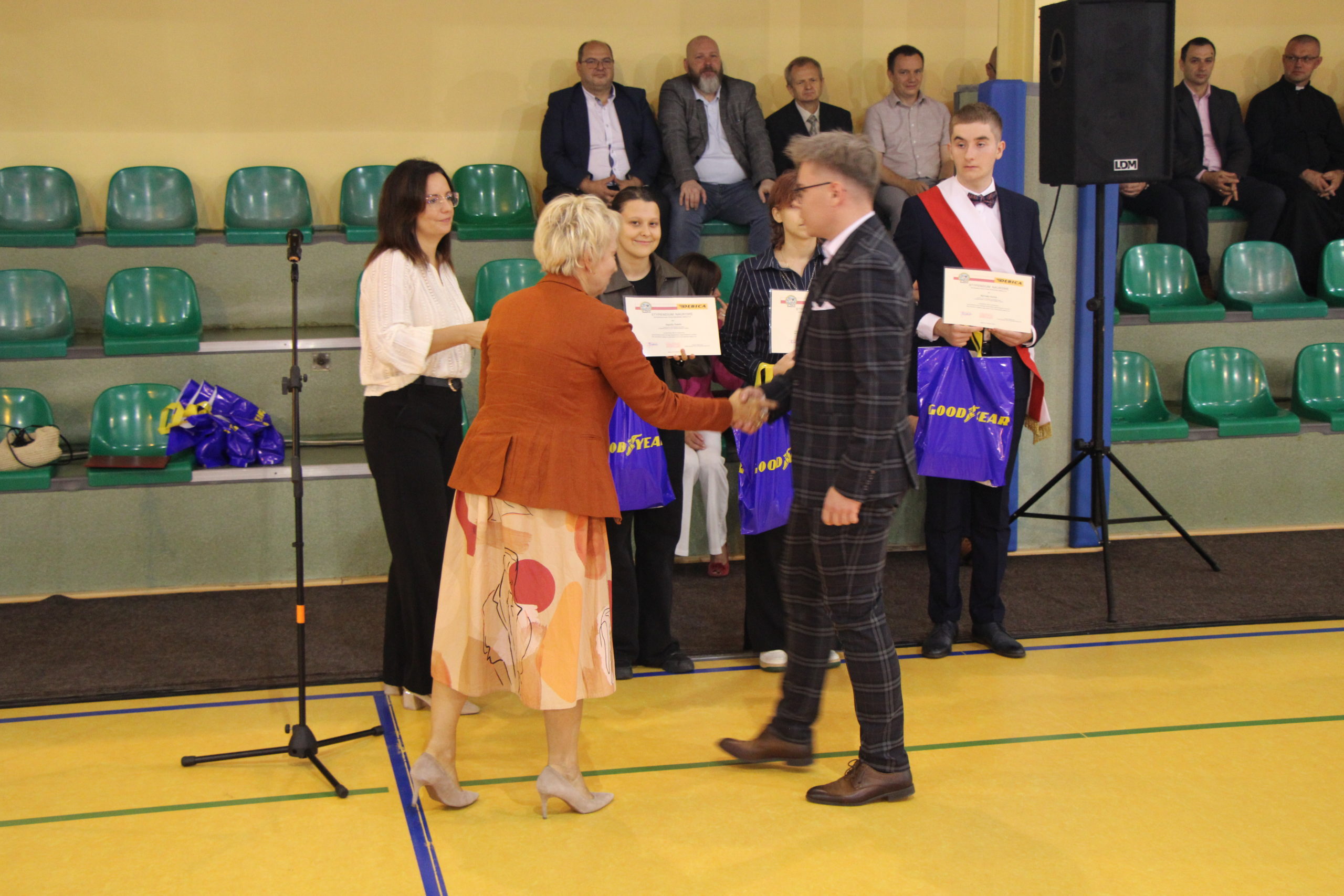Pani dyrektor Joanna Dymitrowska, przywitała całą społeczność szkoły, a szczególnie uczniów klas pierwszych, wstępujących w szkolne progi KWIATKA. Zostały wręczone stypendia zakładowe Firmy Oponiarskiej Dębica S.A. dla 6 najzdolniejszych uczniów technikum. Stypendia wręczała Pani Sylwia Miazga przedstawicielka Zakładu.