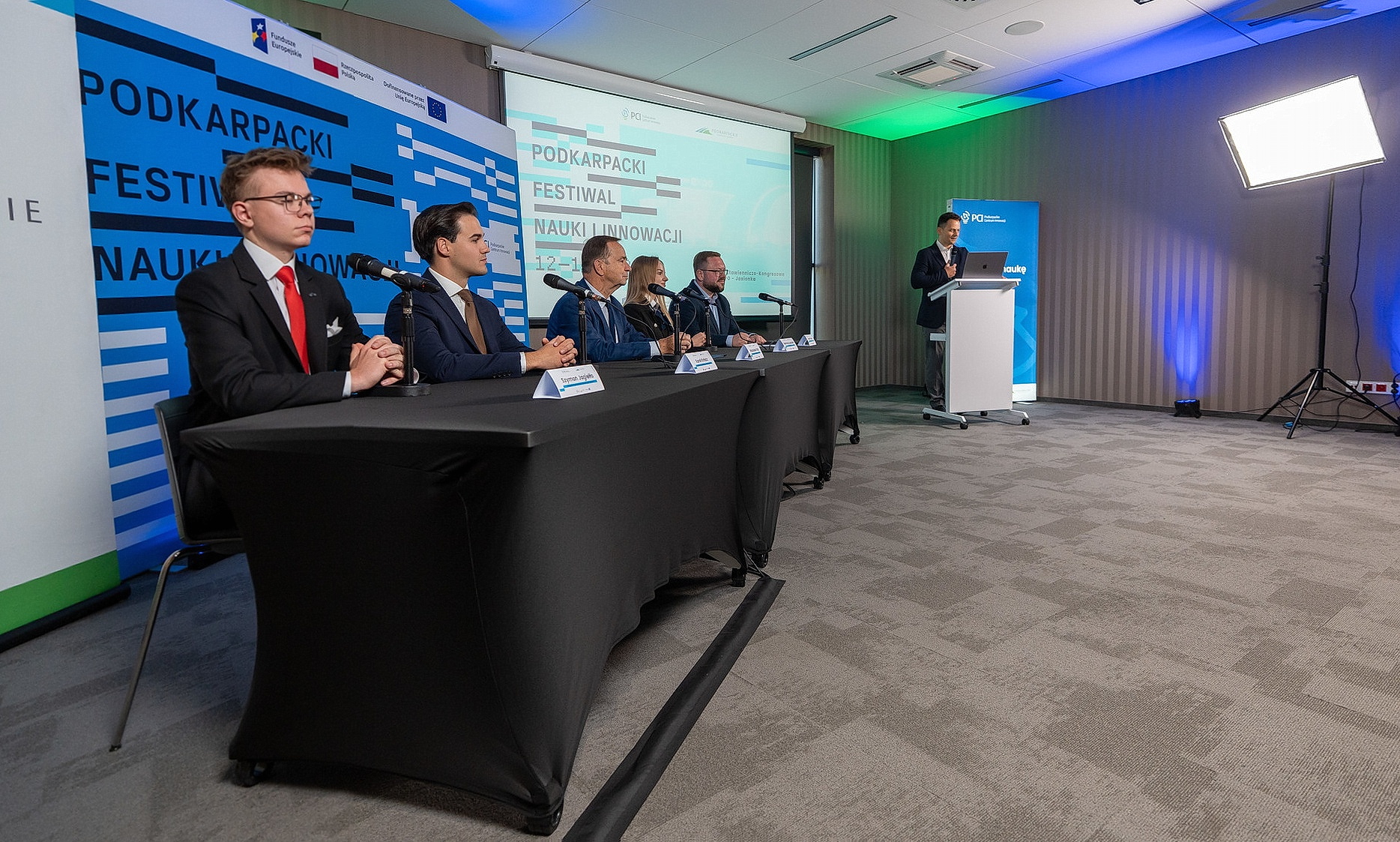 Ambasadorzy Festiwalu podczas konferencji prasowej w Podkarpackim Centrum Innowacji w Rzeszowie.[/caption]