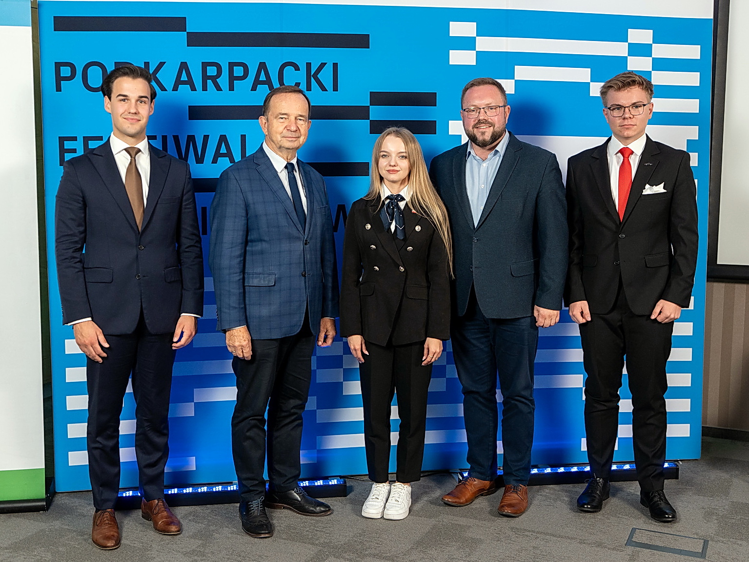 Z ogromną dumą informujemy, że w gronie trzech ambasadorów Festiwalu znalazł się nasz uczeń – Szymon Jagiełło, lider Koła Naukowego TechnoZONE. Szymon, autor nagradzanych projektów takich jak Drone Drop Delivery czy Kwantowe wspomaganie fotowoltaiki, ma już na swoim koncie liczne sukcesy w konkursach ogólnopolskich i międzynarodowych. Jako ambasador będzie reprezentował na Festiwalu młodzież z całego Podkarpacia, stając się głosem pokolenia, do którego wydarzenie jest szczególnie adresowane.