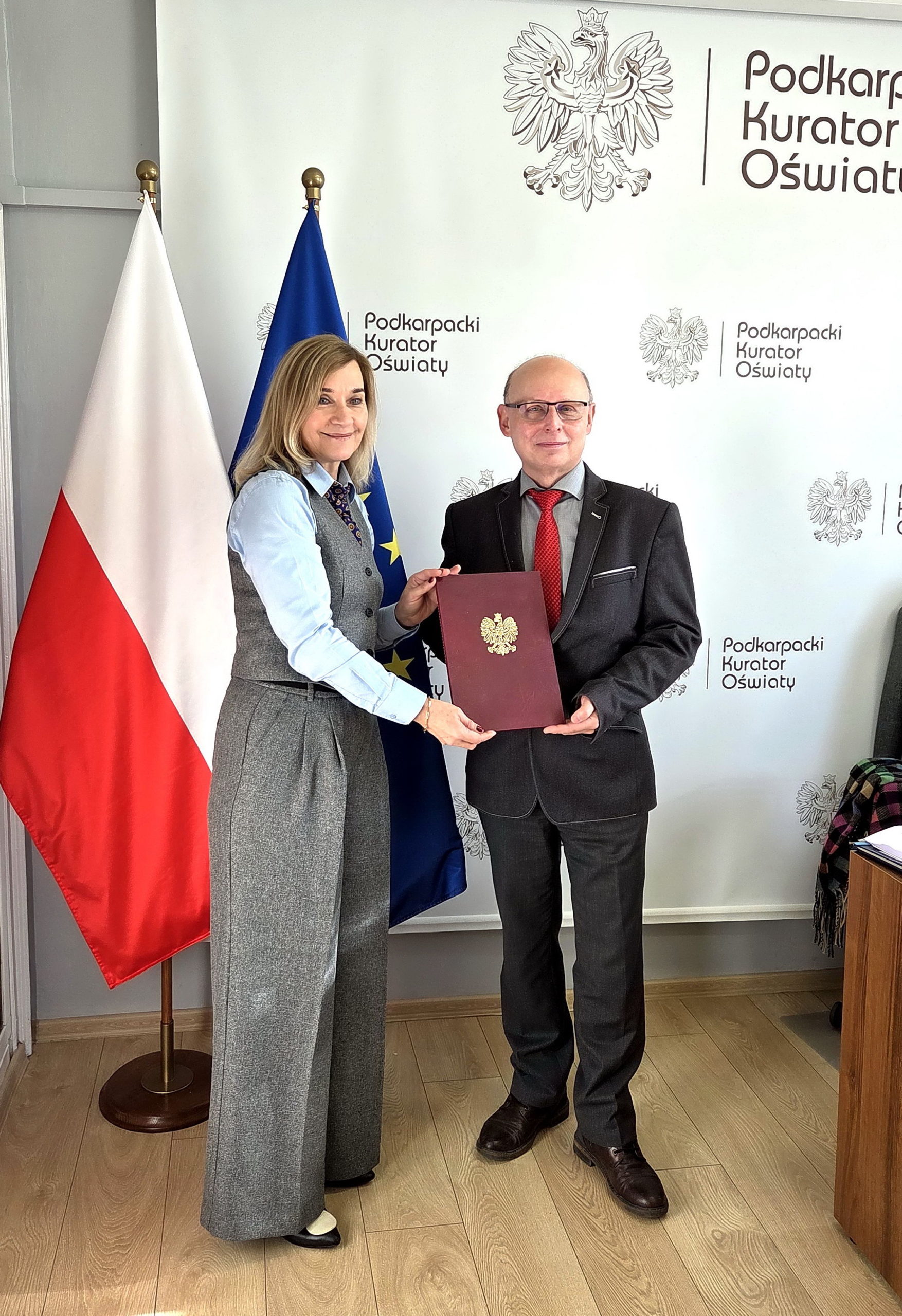 W dniu 15.12 .2025 nasz nauczyciel Pan Marek Braun odebrał z rąk Pani Doroty Nowak-Maluchnik Kurator Oświaty w Rzeszowie nagrodę w prestiżowym konkursie MEN .Wyróżnienie jest tym bardziej szczególne ,że przypada ono tylko dla jednego nauczyciela w danym województwie w poziomie szkół średnich.