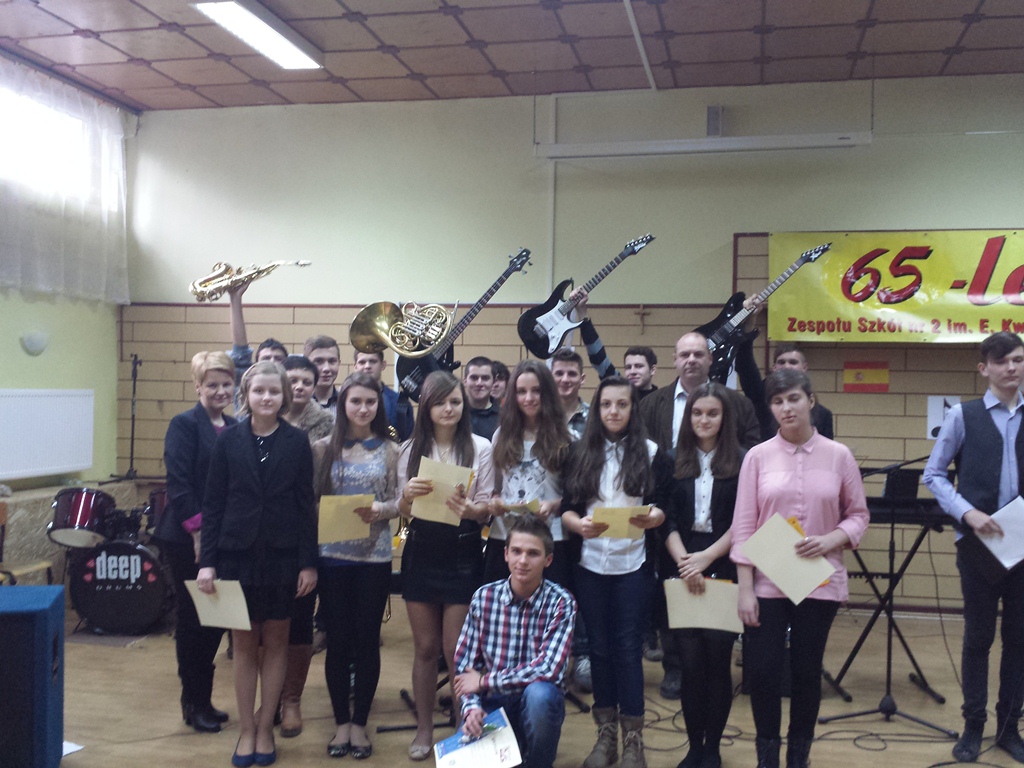 Uczestnicy konkursu prezentowali bardzo wysoki poziom, jednak bezkonkurencyjny okazał się Wiktor Różak z zespołem „Nazwa Własna” z „Kwiatka”, drugie miejsce przypadło Milenie Gawlik z MG Nr1, trzecie natomiast zajęli: Iga Misa z MG Nr1, Kinga Kania z MG Nr3 oraz duet Patrycja Węgrzyn i Konrad Kamiński z Zespołu Szkół Nr2. Wszyscy uczestnicy otrzymali pamiątkowe dyplomy i nagrody rzeczowe, natomiast zdobywcy trzech pierwszych miejsc dodatkowo otrzymali karty upominkowe do zrealizowania w „Empiku”. Fundatorem wszystkich nagród jest Dyrekcja Zespołu Szkól Nr2.