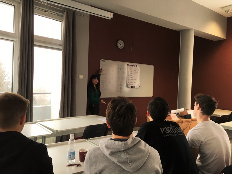 W dniu 22 stycznia 2016 roku w ramach projektu „Otwarte Laboratoria” skierowanego do maturzystów wybranych szkół ponadgimnazjalnych z województwa podkarpackiego, uczniowie klasy 4 ebt mieli okazję uczestniczyć w warsztatach odbywających się w tejże uczelni. Pierwszym wykładem na kierunku filologia angielska było wprowadzenie do języka chińskiego, „Why not Chinese for a change?”. Zajęcia były prowadzone przez panią Qinghua Zheng- Żyradzką, która używając języka angielskiego zapoznała nas z podstawowymi wyrażeniami chińskimi, np. liczebnikami, dniami tygodnia, miesiącami, w sposób graficzny przedstawiła znaczenie słów, ich akcent i intonację.