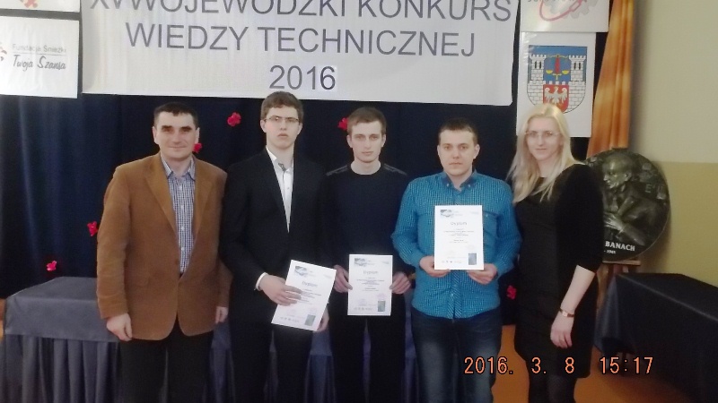 W dniu 08.03.2016 odbyły się w Jarosławiu finały XVIII konkursu Wiedzy Technicznej, troje naszych uczniów: