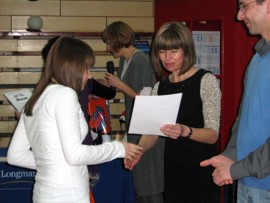 | Nagrody kolejnym zwycięzcom konkursu wręczyła Pani dyrektor Joanna Dymitrowska | |